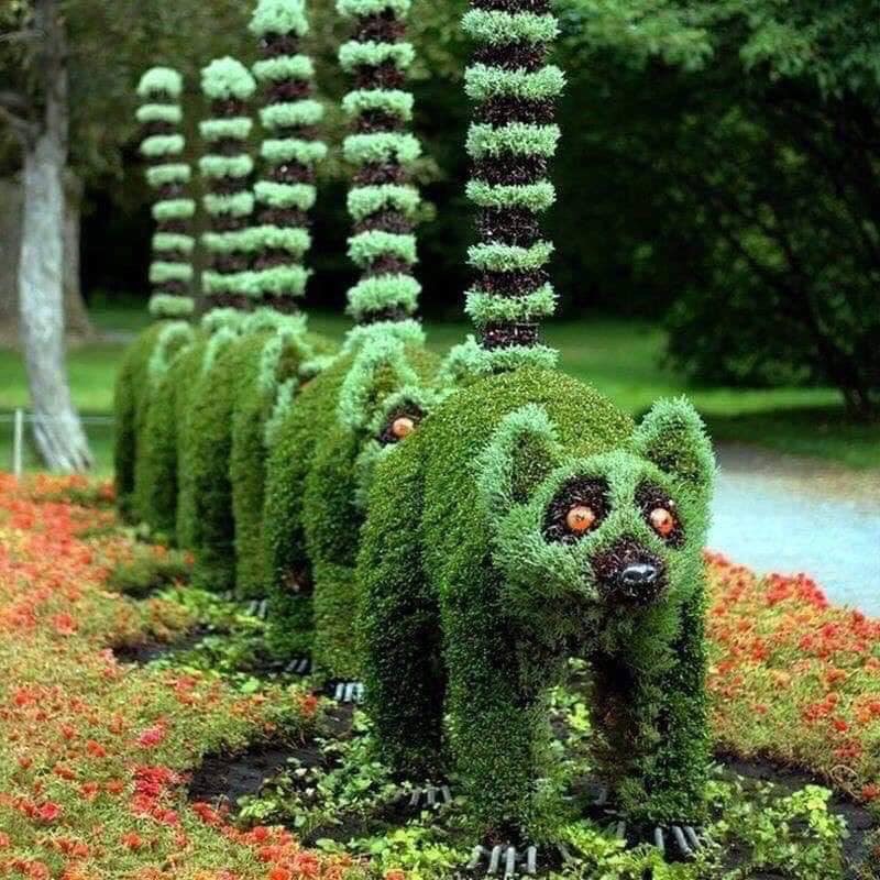 Topiaires sont des sculptures de vie en trois dimensions qui peuvent ĂȘtre des dessins gĂ©omĂ©triques, comme des spirales, des fac-similĂ©s et des ĂȘtres vivants, tels que les personnes et les animaux.